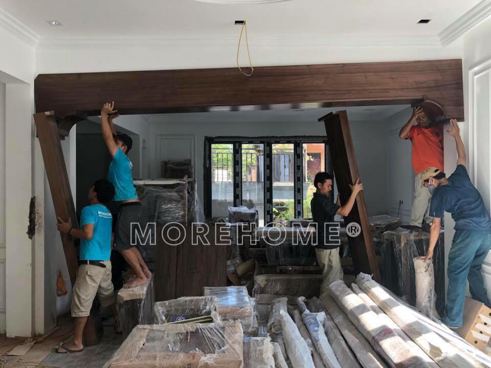 Morehome sản xuất hoàn thiện nội thất gỗ óc chó cho biệt thự hà tĩnh. Chúng tôi đóng gói hàng hóa cẩn thận và chuyển hàng về biệt thự hà tĩnh cho kịp tiến độ thi công nội thất. Liên hệ thiết kế thi công và sản xuất nội thất gỗ óc chó số hotline: 0975438686.