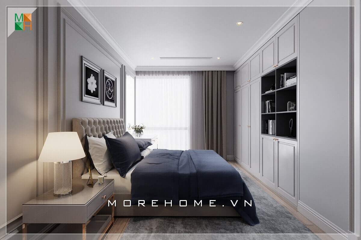 Ánh sáng thiết kế với khoảng trắng tối đa giúp không gian phòng ngủ luôn được thông thoáng.