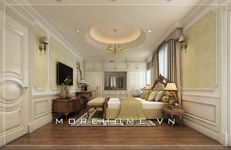Trang trí nội thất phòng ngủ chung cư cao cấp phong cách tân cổ điển đầy sang trọng